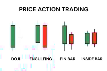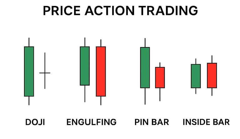 Common patterns: Doji, Engulfing, Pin Bar, Inside Bar.