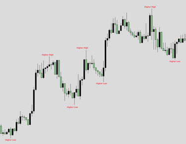 Bullish Structure (Uptrend): Higher Highs (HH) and Higher Lows (HL).